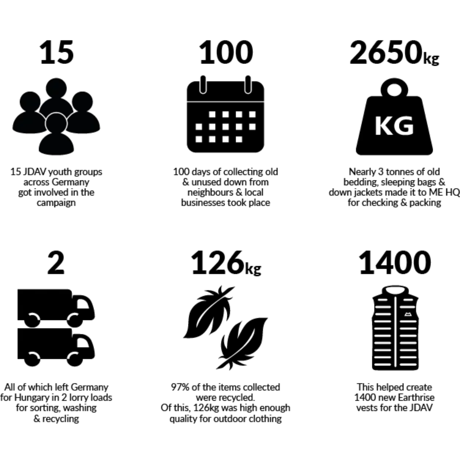 In all, 2 lorry loads and nearly 3 tonnes of down made it to Hungary for recycling of which 126kg was of high enough quality to be used for our clothing.
