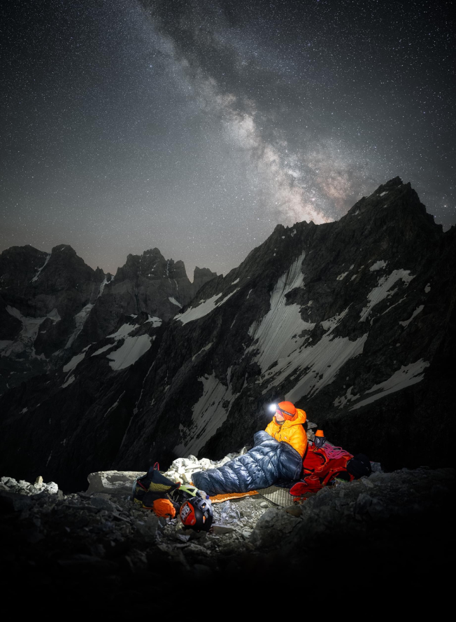 Many options are available as an alternative to down, and synthetic equivalents are gradually improving. Nonetheless, nothing beats down regarding loftiness and performance in dry conditions. Mountain Equipment offers a variety of synthetically insulated products, including sleeping bags, jackets and accessories, in addition to our down products.